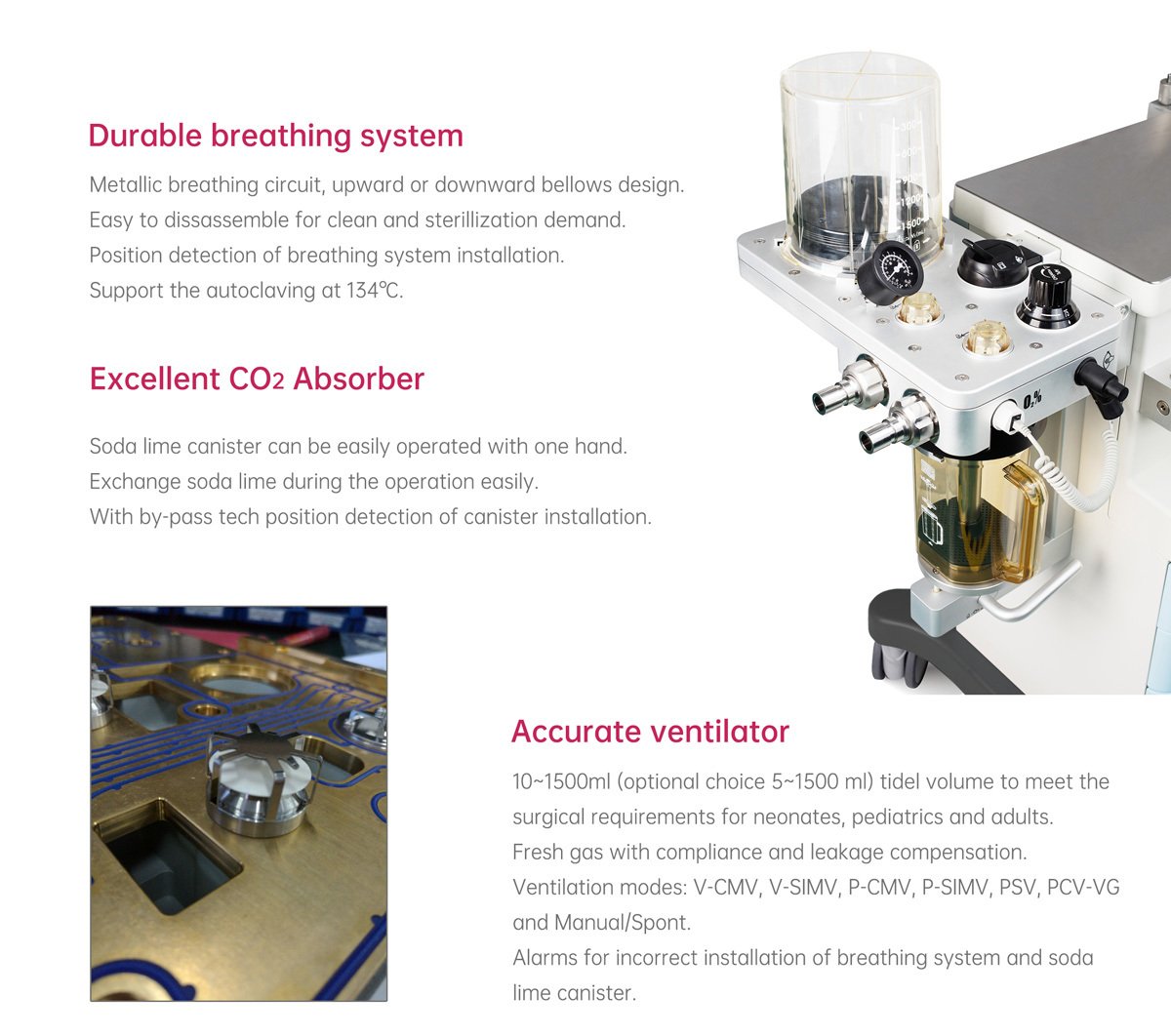 - Multiple ventilation modes for surgical anesthesia