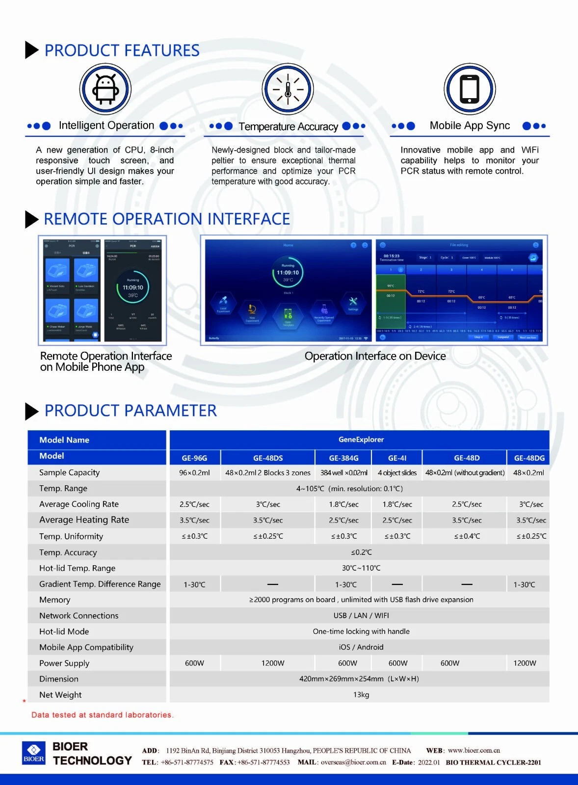 The Bioer GE-96G Gene Explorer Thermal Cycler is a high-performance PCR thermal cycler designed for reliable and precise DNA amplification in molecular biology laboratories. Featuring a 96-well capacity, advanced temperature control technology, and an intuitive touchscreen interface, the GE-96G delivers consistent PCR results for research, diagnostics, and biotechnology applications.
