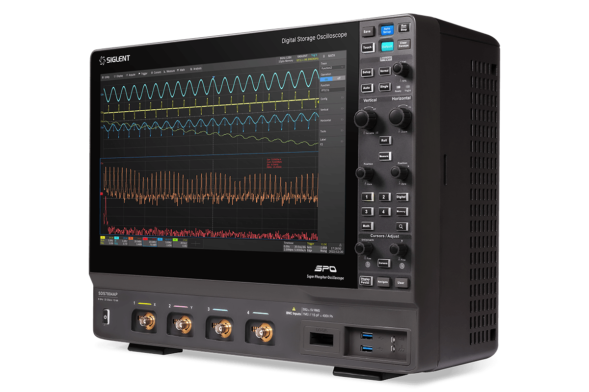 The SIGLENT SDS7000A Series Digital Storage Oscilloscopes are high-performance mixed-signal oscilloscopes designed for advanced electronics research, high-speed digital design, and signal integrity analysis. Available with bandwidth options from 3 GHz to 8 GHz, these oscilloscopes feature 12-bit ADC resolution, sampling rates up to 20 GSa/s, and deep memory up to 2 Gpts per channel, enabling precise capture and analysis of complex signals.